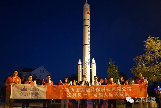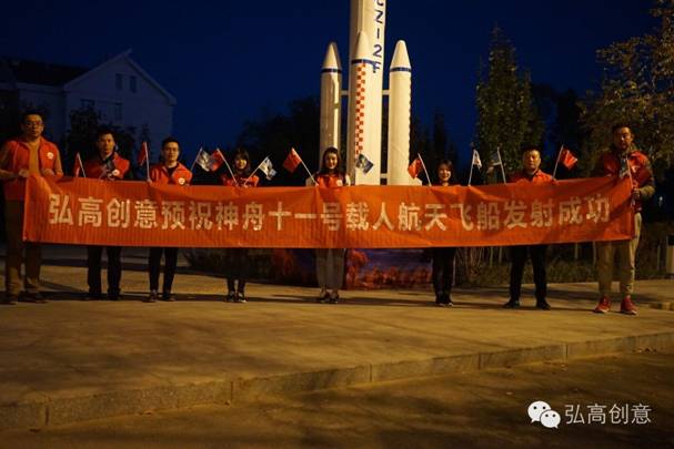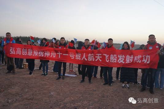活力四射的弘高創意企業代表團成員(yuán) 在發射現場爲神舟十一(yī)号加油航天精神成就中(zhōng)國航天,企業精神助力弘高創意做大(dà)、做強。