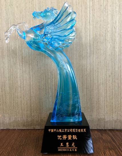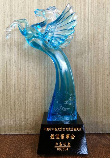 2016年4月15日,由《證券時報》和《中(zhōng)國基金報》主辦、中(zhōng)國上市公司發展聯盟承辦的第七屆“中(zhōng)國上市公司投資(zī)者關系天馬獎”頒獎盛典在廣東深圳舉行,北(běi)京弘高創意建築設計股份有限公司榮獲“中(zhōng)國中(zhōng)小(xiǎo)闆上市公司投資(zī)者關系最佳董事會獎”,弘高創意董事會秘書(shū)王慧龍先生(shēng)被評選爲“中(zhōng)國中(zhōng)小(xiǎo)闆上市公司投資(zī)者關系優秀董秘”。