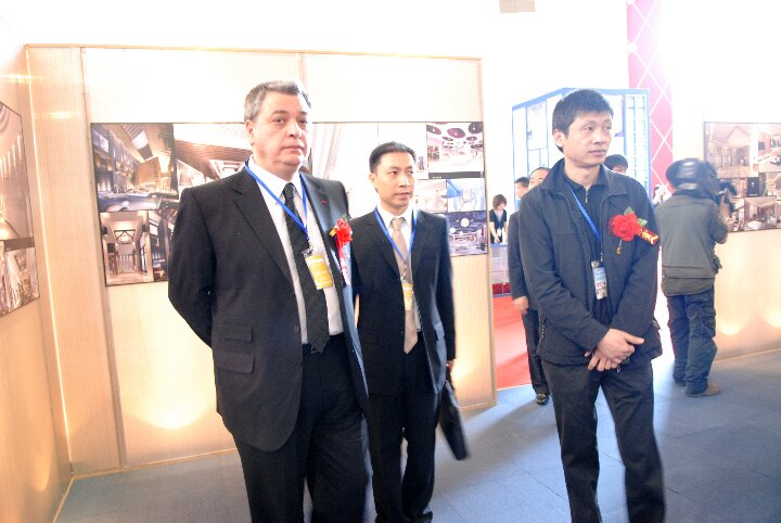 設博會開(kāi)幕當天,馬若龍(世博會中(zhōng)國澳門館設計者)、何鏡堂(上海世博中(zhōng)國館設計師)等設計師饒有興趣參觀了我(wǒ)(wǒ)司的展廳,并和黃總進行了交流。