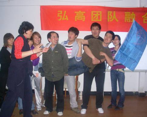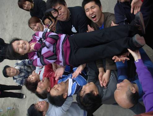 到了基地,已經是晚上七點半,大(dà)家匆匆吃了晚餐後,就開(kāi)始了我(wǒ)(wǒ)們拓展的第一(yī)課-破冰起航。大(dà)家先通過系列互動遊戲進行熱身和團隊融洽及團隊歸屬感的訓練,之後拓展的老師把我(wǒ)(wǒ)們分(fēn)成兩個組,每組十人,男女各半,要求在二十分(fēn)鍾的時間内每個組給自己的組起隊名、對訓、對歌以及選舉出隊長、副隊長、安全員(yuán)和旗手等,還要給自己的組做旗幟和做LOGO。二十分(fēn)鍾後,令人驚奇的是,我(wǒ)(wǒ)們兩個組的名字都叫雄獅隊,最後隻好石頭剪刀布來決定雄獅一(yī)對和雄獅二隊,呵呵,是心有靈犀還是巧合?之後兩個組又(yòu)PK了一(yī)些遊戲,兩個多小(xiǎo)時之後,團隊破冰結束,每個人清楚的知(zhī)道了自己所屬的團隊,也通過PK增強了競争精神和自己團隊的意識。晚上十點一(yī)刻左右,大(dà)家各自回宿舍休息,等待和迎接第二天更加令人振奮的拓展活動。
