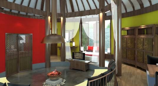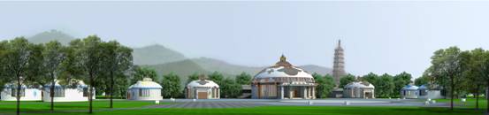 蒙古包外(wài)部設計依據傳統蒙古包的形式,采用新型裝飾材料,在美觀的前提下(xià),達到适合現代人的使用需求以及防潮、防蟲、保暖等基本要求,内部設計體(tǐ)現滿、蒙、藏、漢