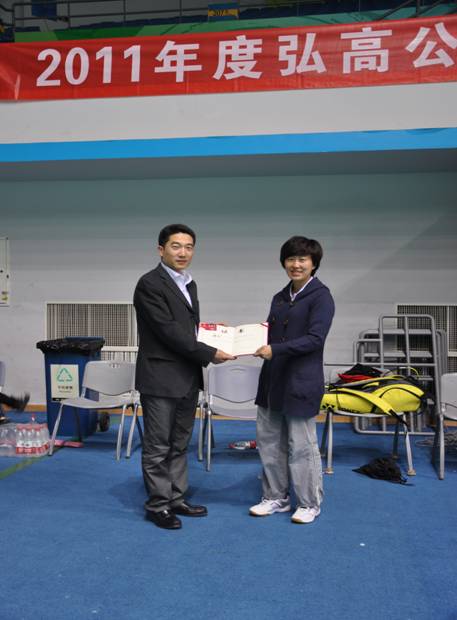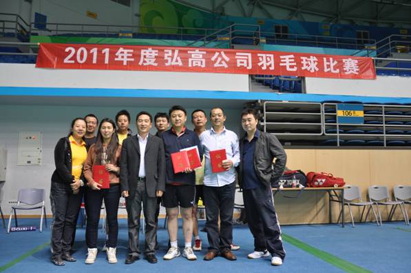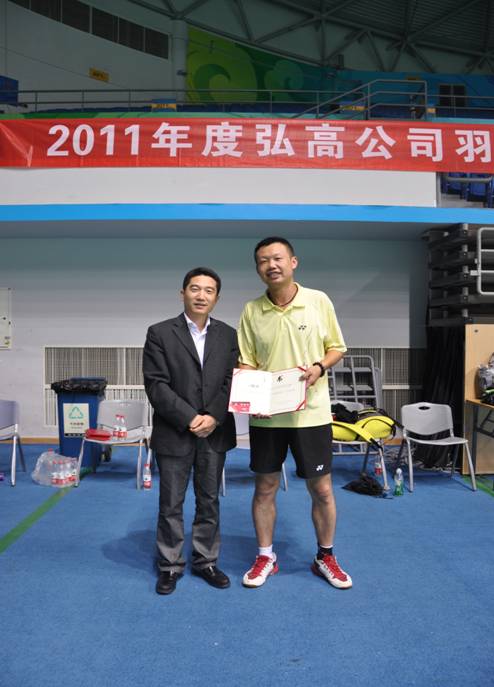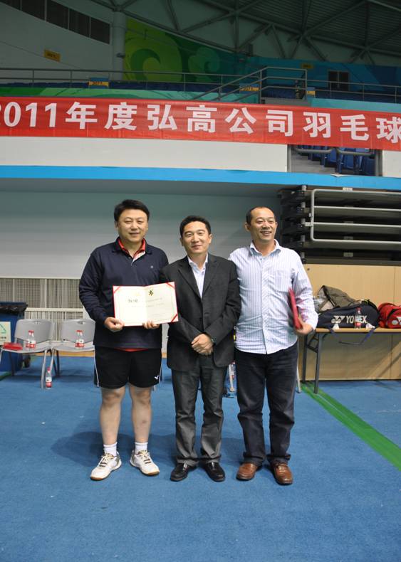 由公司主辦的“2011年度弘高羽毛球比賽”于10月28日圓滿落下(xià)帷幕。本屆比賽得到公司領導、各個部門員(yuán)工(gōng)的大(dà)力支持。同事們踴躍參與,全公司共有近70人報名。本次比賽共有男單、女單、男雙、混雙4個賽次,分(fēn)别決出每個賽次的冠、亞、季軍。通過本次比賽,提高了大(dà)家對健身的積極性,達到健身的目的。此外(wài),選手們密切合作,體(tǐ)現出平時強大(dà)的團隊合作意識,展現出我(wǒ)(wǒ)公司的拼搏進取精神。向獲獎選手表示祝賀!男雙比賽總裁判長宣布比賽成績賽場風采張總爲女單頒獎男單冠軍男雙季軍獲獎名單男單組:冠軍:葉朝旭 亞軍:黃偉 季軍:官亞飛女單組:冠軍:劉文 亞軍:甄秋影 季軍:謝超男雙組:冠軍:張 權 葉朝旭 亞軍:韓力偉 周廣江 季軍:黃 偉 黃東海混雙組:冠軍:葉朝旭 劉文 亞軍:韓力偉 劉曉蕊 季軍:張 權 李玉蘭