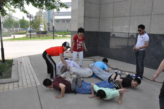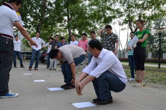 5月4日下(xià)午13點,市場經營中(zhōng)心一(yī)行近50人,趕往湯山溫泉假日會議中(zhōng)心,開(kāi)始市場經營中(zhōng)心的“狼性團隊”拓展培訓之旅。整個拓展項目及培訓課程是市場中(zhōng)心内部人員(yuán)自己策劃組織的,目的是增進團隊合作,感受在困境中(zhōng)相互依存、成功時共同分(fēn)享、失敗時鼎力相助的團隊精神同時加強團隊執行力、提高團隊戰鬥力。下(xià)午四點經過簡單熱身,開(kāi)始狼性團隊培訓的第一(yī)階段——群狼行動。第一(yī)階段主要是團隊的熱身,調動所有隊員(yuán)的積極性,增進團隊的融洽度。第一(yī)個項目是超越自我(wǒ)(wǒ),讓隊員(yuán)下(xià)蹲,雙腳并攏,雙手分(fēn)别緊握腳後跟,向前跳躍一(yī)張A4紙(zhǐ)的長度,不能滾動或者倒下(xià),同時雙手緊握雙腳,不能放(fàng)松。這是一(yī)個超常規的遊戲,嚴格執行起來所有人都無法超越。通過這個項目讓所有隊員(yuán)了解到成功和失敗不是最重要的——關鍵是通過參與學到東西。對于看起來似乎“不可能完成”的事情,有些的确無法辦到,但有些卻也未必。總之,大(dà)家重在參與,樂在其中(zhōng)。