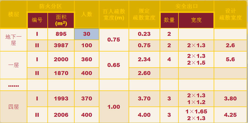 商(shāng)場消防平面計算書(shū):按防火(huǒ)分(fēn)區計算疏散寬度