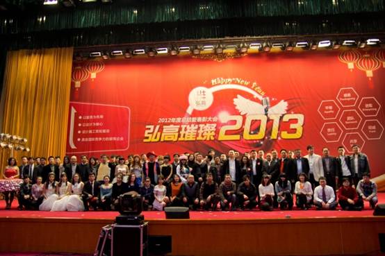 2013年1月20日下(xià)午13時,北(běi)京弘高公司2012年度工(gōng)作會議暨2013年新春團拜會在陽光國際會議中(zhōng)心隆重舉行。陽光國際會議中(zhōng)心三層大(dà)會堂弘高公司簽到台前人頭攢動,喜氣洋洋,董事長何甯、副董事長甄小(xiǎo)濤攜公司高管出席年會,各分(fēn)公司及公司股東齊聚一(yī)堂,與弘高公司全體(tǐ)員(yuán)工(gōng)在火(huǒ)紅的紙(zhǐ)上簽到留念,共同驗證這喜慶一(yī)刻。活動曆時四個小(xiǎo)時,包括會議環節、優秀員(yuán)工(gōng)表彰穿插員(yuán)工(gōng)文藝彙演環節。會議環節由公司常務副總、設計研發中(zhōng)心總經理韓力偉主持,總經理張旭東作年度總結報告,在報告中(zhōng)他指出:2012年是弘高公司三年規劃的第二年,是夯實基礎持續騰飛的一(yī)年。回首2012,我(wǒ)(wǒ)們付出了艱辛,取得了成績。展望2013,我(wǒ)(wǒ)們滿懷信心的同時也深感壓力巨大(dà)。張總發言後,各中(zhōng)心、各設計院負責人及分(fēn)公司代表、股東代表都分(fēn)别發言。副董事長甄小(xiǎo)濤做總結發言,在對2012年的工(gōng)作充分(fēn)肯定後,她指出:要加強客戶服務體(tǐ)系建設和完善,确保客戶滿意度,上述目标的不斷完善和實現,才能使我(wǒ)(wǒ)們的弘高公司真正持續發展。接下(xià)來的優秀員(yuán)工(gōng)表彰穿插員(yuán)工(gōng)文藝彙演環節由張豔賓和提金子主持。在員(yuán)工(gōng)總結表彰環節,一(yī)大(dà)批先進脫穎而出,弘高2012優秀員(yuán)工(gōng)共34人獲獎。優秀團隊獎8名分(fēn)别是:統計部、市場中(zhōng)心預算部、設計三院、工(gōng)程一(yī)公司、工(gōng)程九公司、财務部、員(yuán)工(gōng)餐廳、沈陽分(fēn)公司。最佳客戶滿意團隊獎由王海棠項目團隊獲得。最佳創意設計師獎周慶國、最佳涉外(wài)工(gōng)程投标設計配合團隊獎設計五院施工(gōng)圖團隊摘得。最佳團隊協作獎落在了北(běi)大(dà)國際醫院項目。這些團隊和個人都是2012年弘高公司優秀的典範,在過去(qù)一(yī)年的裏,他們在各自的崗位上,創造了驕人的業績,忠實踐行了“不甘平庸、力争上遊”的弘高精神。期間的節目表演包括雜(zá)技《肩上芭蕾》、音樂表演劇《中(zhōng)國好聲音》、民族舞蹈《萬馬奔騰》、現代舞蹈《弘高STYLE》、小(xiǎo)品《相親》、《死了都要改》、《如此招标》、環保時裝秀等一(yī)大(dà)批優秀的節目赢得了全體(tǐ)觀衆雷鳴般的掌聲。在文藝演出結束後,董事長何甯上台作總結發言,并攜同公司高管與全體(tǐ)演職人員(yuán)合影留念。他對年會給予了肯定和高度的評價,贊揚這是一(yī)次成功的盛大(dà)的年會,感謝全體(tǐ)演職人員(yuán)與後台工(gōng)作人員(yuán)的細節關注和完美表現,并感謝全體(tǐ)員(yuán)工(gōng)爲弘高公司發展而付出的辛苦,希望2013年在大(dà)家的共同努力下(xià)公司再創輝煌。