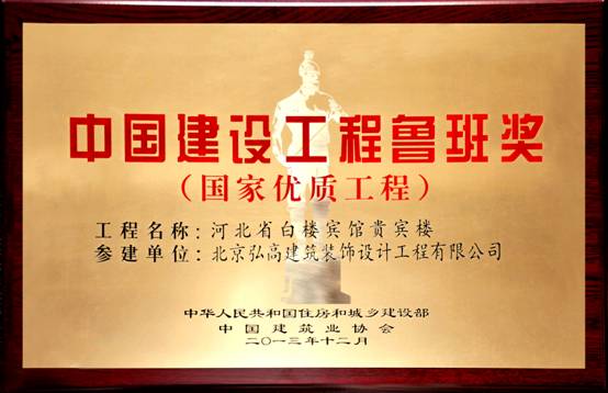 日前,2012-2013年度中(zhōng)國建設工(gōng)程魯班獎在北(běi)京頒發,北(běi)京弘高建築裝飾設計工(gōng)程有限公司承接的河北(běi)省白(bái)樓賓館貴賓樓項目榮獲獎項。魯班獎由中(zhōng)國住房和城鄉建設部、中(zhōng)國建築業協會主辦,是全國建設工(gōng)程質量的最高榮譽獎。