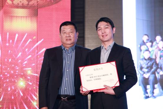 董事長何甯爲2013年度最佳團隊協作獎獲得者頒獎