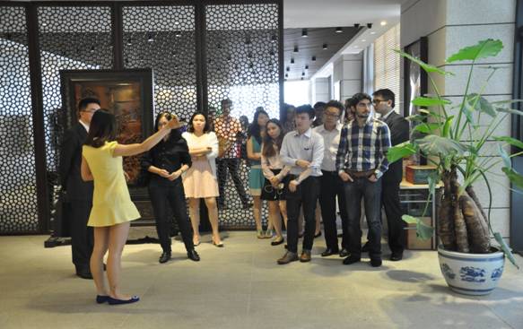 香港理工(gōng)大(dà)學商(shāng)學院是全球排名65位的商(shāng)學院,擁有超過200名教授和5200名在讀學員(yuán),商(shāng)學院的核心碩士項目“中(zhōng)國商(shāng)貿管理理學碩士”每年會組織相關的中(zhōng)國商(shāng)務考察。6月12日9點30分(fēn)參加該考察活動的有學員(yuán)33名(平均工(gōng)作經驗2年左右)以及帶隊老師兩名,近40餘名考察團員(yuán)在弘高員(yuán)工(gōng)的帶領講解下(xià)參觀弘高設計•弘高裝飾兩棟辦公樓以及弘高設計的物(wù)料中(zhōng)心。