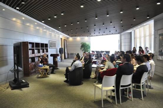 上午10時,弘高設計•弘高裝飾的董事長何甯先生(shēng)在弘高大(dà)廈8号樓大(dà)廳以茶話(huà)沙龍的形式給碩士團成員(yuán)詳細介紹了行業的現狀及發展、弘高企業的經營模式以及用圖文展示了企業經典的設計、工(gōng)程案例。