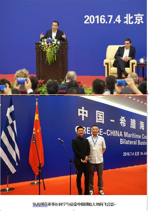 弘高創意受邀參加中(zhōng)希海洋合作論壇,于2016年7月4日下(xià)午在北(běi)京人民大(dà)會堂舉行,中(zhōng)國總理李克強、希臘總理阿萊克斯.齊普拉斯出席論壇并發表演講。李克強總理在闡述了中(zhōng)國和平的海洋觀:和平、合作、和諧,傳遞了三大(dà)重要信号:中(zhōng)國希望推動海洋和平、合作、和諧的發展;比港是中(zhōng)國企業爲希臘的成功投下(xià)的贊成票(piào);中(zhōng)國是世界經濟的推動力,希臘也将成爲歐盟強有力成員(yuán)。